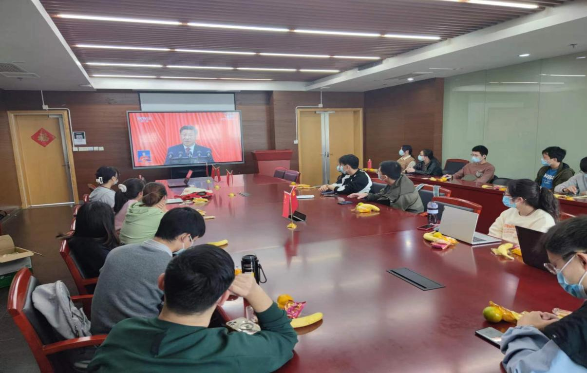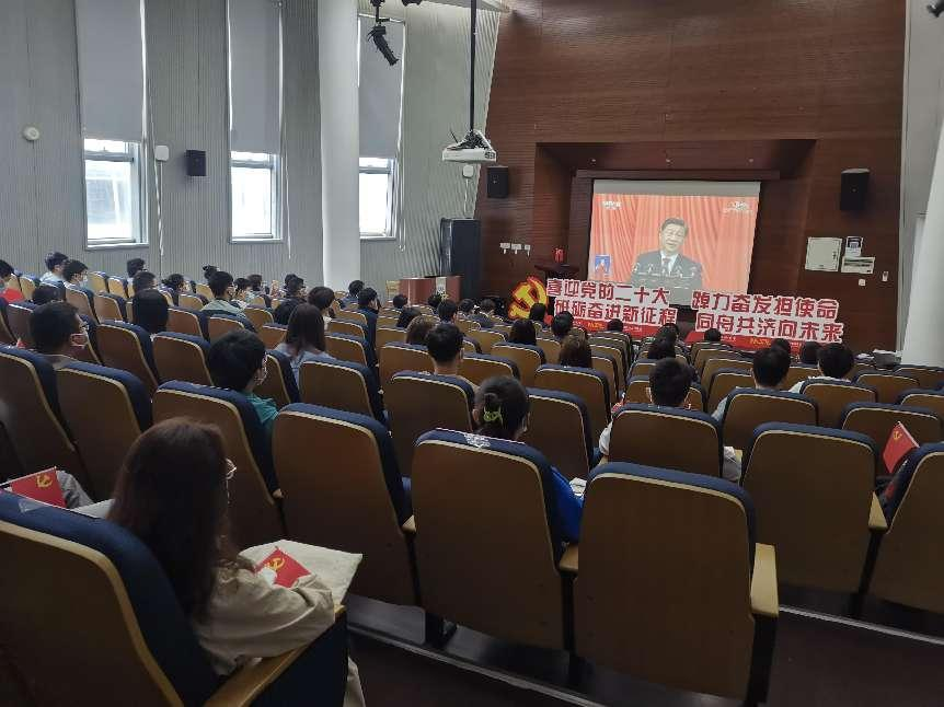 2022年10月16日上午10点,材料科学与工程学院党委组织学院全体师生收看中国共产党第二十次全国代表大会,学院领导班子成员、党支部书记、师生代表75人在嘉定校区德才馆报告厅及441会议室集中收看,其余党员同志300余人因疫情防控要求,在线上进行同步收看。