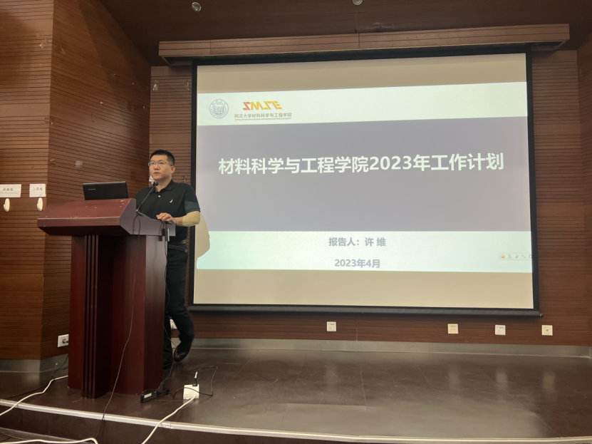 许维院长传达了学校2023年度工作要点,结合学校2023年工作要点,回顾了学院2022年工作,对学院2023年重点工作进行部署。许维院长指出:2023年,学院要深入开展学习贯彻习近平新时代中国特色社会主义思想主题教育,深化贯彻落实党的二十大精神,根据《同济大学2023年工作要点》统一部署,继续以“人才引领,两轮驱动”方针为指引,以立德树人、凝练方向、强化基础、建设团队为工作重点,推进学科交叉主阵地、青年人才聚集地、重大项目策源地、国产仪器研发地建设,全面推进学院学科建设、师资队伍建设、育人质量保障体系建设、管理支撑体系建设各项工作。