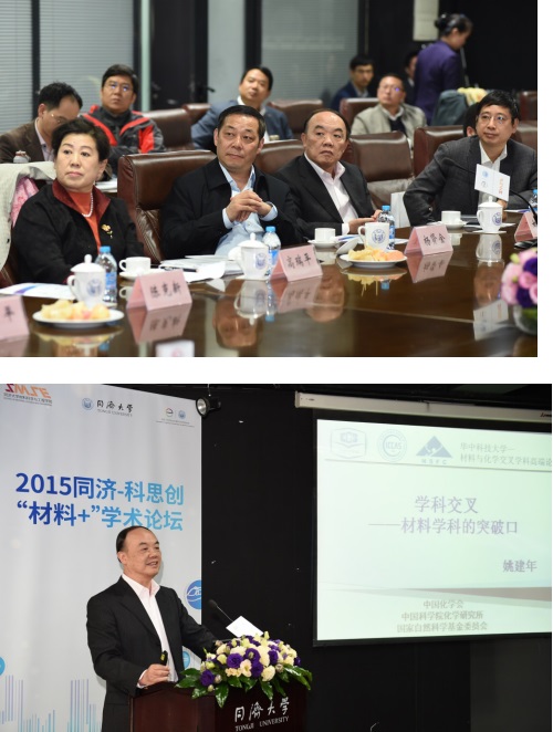 2015年11月14日,由BB贝博艾弗森官方网站、同济大学科学技术研究院和同济-科思创生态建筑与材料研究院共同主办的同济-科思创“材料+”学术论坛在同济大学中法中心如期召开。国家自然科学基金委员会副主任姚建年院士,国家自然科学基金委员会副主任高瑞平,科技部高新司材料处处长陈其针和调研员李志农,国家自然科学基金委工程与材料科学部材料二处处长陈克新,同济大学党委书记杨贤金,新疆大学副校长、BB贝博艾弗森官方网站院长吴广明等莅临论坛,与来自德国科思创公司(原拜耳材料科技)、同济大学科学技术研究院、材料科学与工程学院、土木工程学院、汽车学院、航空航天与力学学院、生命科学与技术学院、口腔医学院、化学系、交通运输工程学院等70余名党政领导、学者和专家们,就材料学科与其他工程类学科潜在的跨专业、跨领域的学术和科研的协同创新发展进行了探讨和展望。