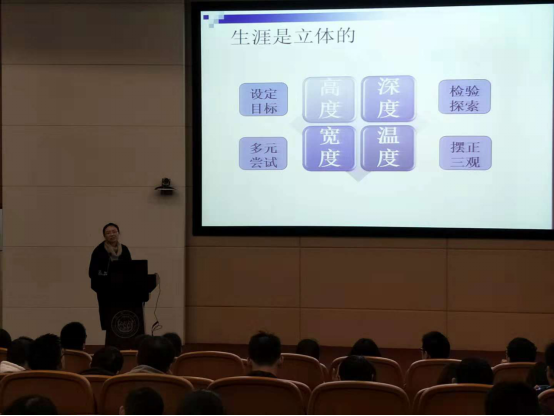 首先方雅静老师简要阐述了关于职业生涯规划的基本内容,她指出职业生涯是立体的,应体现高度、深度、宽度和温度四个维度。“高度”,大学生选择岗位,面对不同就业去向的时候,充分利用同济大学为同学们提供的平台,树立适宜的目标;“深度”,职业目标要经得住检验,同时不断探索、挖掘潜能;“宽度”,多元的尝试,突破定式思维模式,找到适合自己的工作,创造自己的职业;“温度”,协调工作,协调家庭,处理好人际关系。