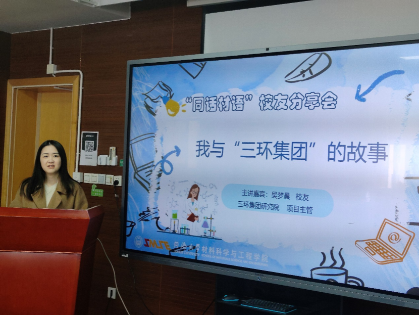 2024年3月13日下午,材料科学与工程学院于嘉定校区德才馆441会议室成功召开“同话材语”校友分享会。本次活动特别邀请到学院2019级校友、三环集团研究院项目主管吴梦晨博士作为主讲嘉宾,30余名本研学子共同聆听学习,与会学子聚焦择业意愿、就业经验、职业发展道路等维度展开了热烈的交流与探讨。