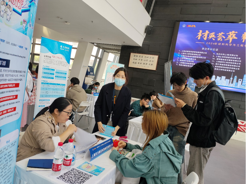 4月23日下午,“材”英荟萃,“料”定未来——材料科学与工程学院2024年就业实习招聘会在嘉定校区德才馆一楼大厅成功举办。本次招聘会吸引了上海市建筑科学研究院有限公司、上海化工研究院有限公司、上海华力集成电路制造有限公司、上海国轩新能源有限公司、科思创聚合物(中国)有限公司、浙江荣盛控股集团有限公司等16家业内知名用人单位参加,为莘莘学子提供了百余个优质就业与实习岗位,涵盖材料、化工、半导体、能源、通信、咨询等多个领域,现场气氛热烈。