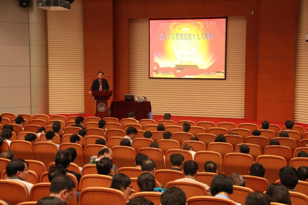 为切实学习宣传贯彻好党的十九大精神,按照学校党委学习党的十九大精神的要求,2017年11月7日下午,材料科学与工程学院举办了题为“深入学习贯彻党的十九大精神”的专题报告会,邀请了同济大学党校原常务副校长范灼华教授主讲。本次报告会也作为材料科学与工程学院承办的2017-2018学年第一学期党校开班党课,与会成员包括材料学院全体教职工、嘉定校区各学院分党校本学期学员(本硕博及教师等入党发展对象)约二百余人。