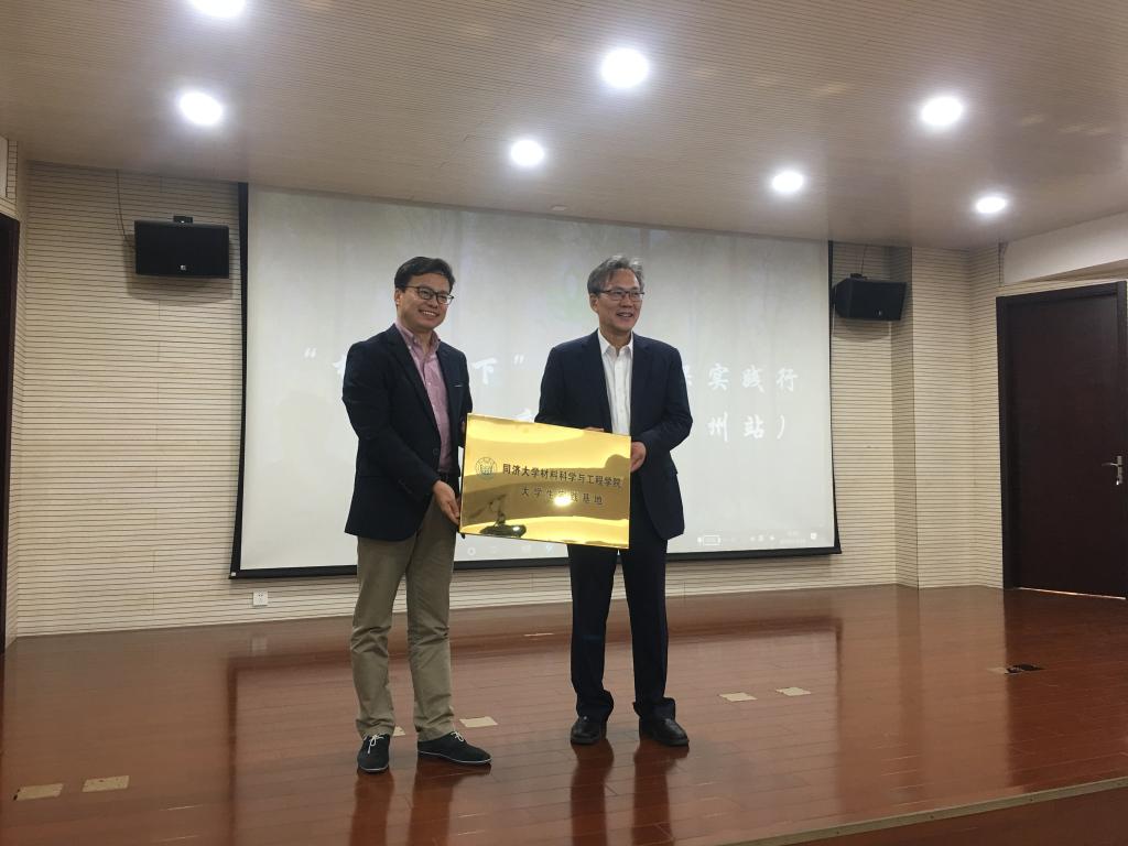 中午12:00,师生们到达维尔利集团进行参观学习并举行校友报告座谈会。报告会由黄云辉主持,报告之前,黄老师介绍了本次“材行天下”全球环保实践行(常州站)的目的,并对维尔利集团的支持表示由衷的感谢,学院特此向维尔利集团授予“同济大学材料学院大学生实践基地”,邱军副院长向维尔利集团董事长李月中校友授牌。接下来是校友座谈会环节,共包含了以下四个主题报告分享。