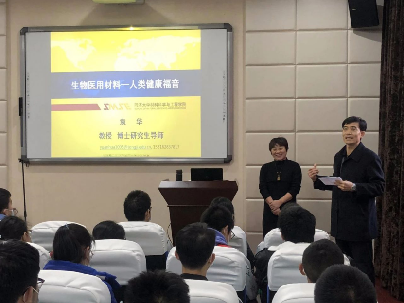 11月26日下午,BB贝博艾弗森官方网站党委副书记兼纪委书记袁华教授来到中央民族大学附属中学校朝阳校区,为高一年级同学们开展了题为“生物医用材料——人类健康福音”的科普讲座,中央民大附中副校长王国德出席了本次讲座。