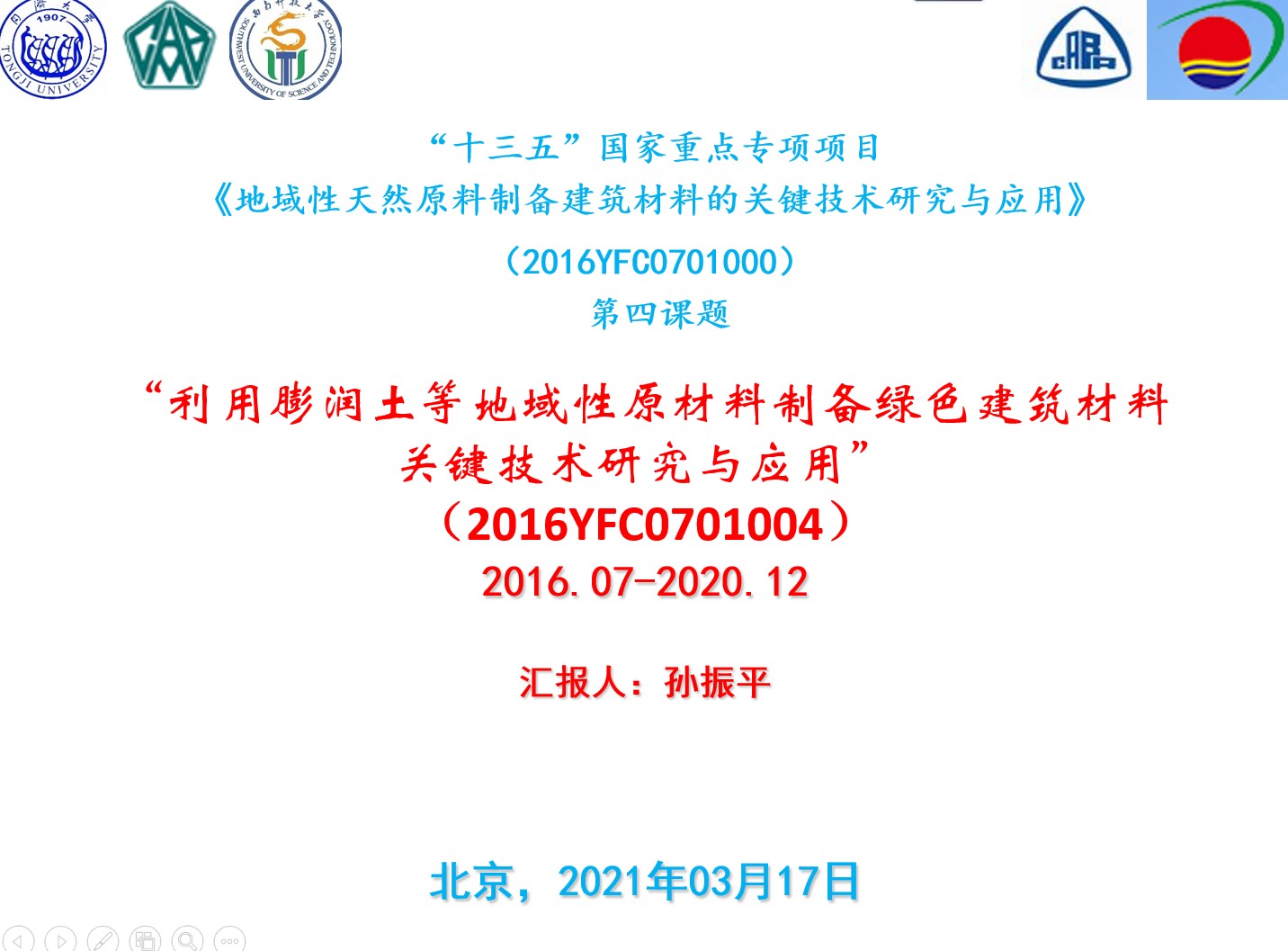 该课题于2016年7月正式启动,历时4.5年,于2020年12月按时完成研究计划全部内容。课题由同济大学牵头,西南科技大学、中国建筑科学研究院、中国建筑材料科学研究总院和辽宁东奥非金属开发有限公司等四家单位参与共同完成。