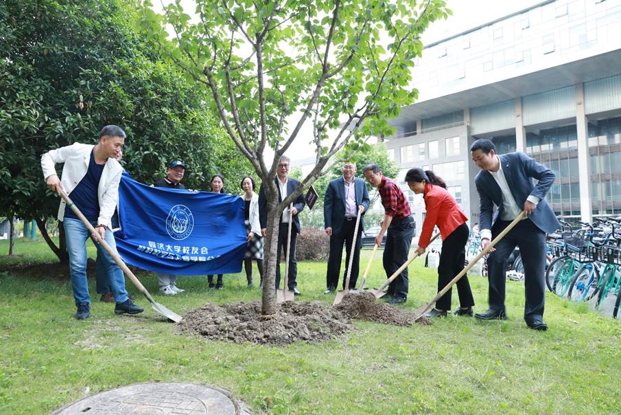 最后,全体与会人员一起合影留念。与会校友和学院领导一起移步至德才馆植树留念,共祝学院65华诞,祝福学院越来越好。十年树木,百年树人,校友工作任重道远。同济材料校友分会第二届理事会将继续凝心聚力、开拓进取,为打造一流材料学科、服务全体材料校友而继续努力奋斗!