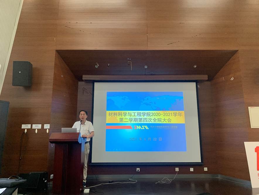 6月22日下午,材料科学与工程学院2020-2021学年第二学期第四次全院大会在德才馆二楼报告厅顺利召开。会议由学院党委书记王中平主持,学院党政领导班子成员和全院教职员工共计一百余名出席参会。