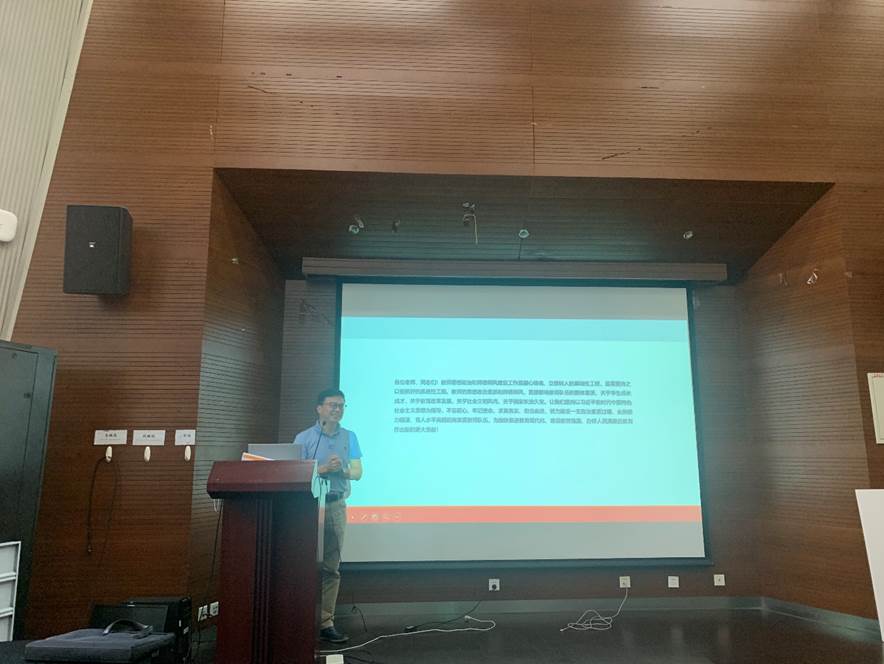 王中平老师带领大家进行了师德专题教育学习,王老师带领大家从习近平新时代中国特色社会主义思想、习近平总书记关于教育的重要论述及教师职业规范三方面进行学习。并对假期工作进行安排。要求大家做好防洪、防汛工作,安排好值班,做好学生工作和留校学生工作。
