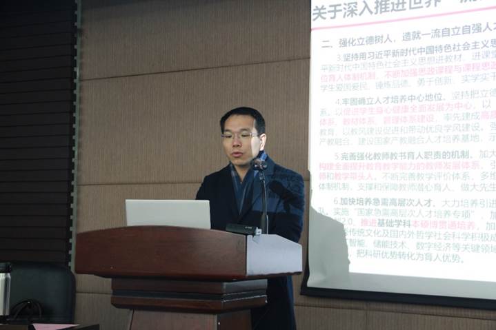 陆伟副院长从学院人才培养所处的背景情况、学院本科和研究生人才培养现状以及亟待解决的问题等多方面做了题为《强化立德树人意识,构建高质量教育体系,全面提高人才培养质量》的主题报告。报告指出在新发展阶段,学院要深入贯彻习近平总书记关于教育的重要论述,落实全国教育大会和研究生教育会议精神,遵循大学发展和教育规律以及人才成长规律,以学校教育思想大讨论为指导,开展学院人才培养工作。在本科生人才培养方面,学院先后召开了教育思想大讨论,组织了国内外顶尖以及对标专业的调研,同时对在校本科生、毕业生就专业人才培养进行了多种形式的问卷调查,综合上述调查分析及讨论结果,提出了2022级本科专业培养方案修订以及学院教学体系完善的若干建议。在研究生人才培养方面,结合学院近五年研究生学位授予情况、论文发表情况以及就业情况等,分析提出了下一步学院研究生培养质量提升的若干举措。