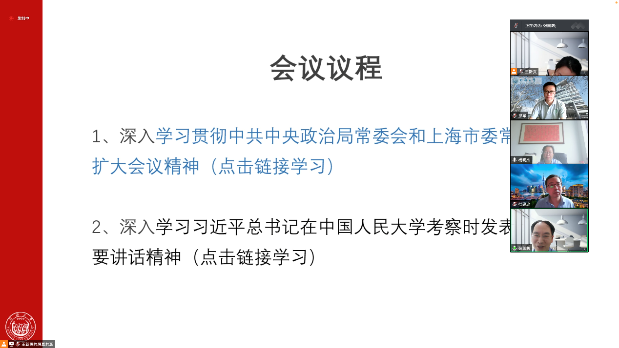 2022年5月7日,材料科学与工程学院党委召开中心组扩大会议,深入学习贯彻中共中央政治局常委会和上海市委常委会扩大会议精神,学院党委书记杨晓杰主持会议,党政领导班子、教工支部书记参加会议。