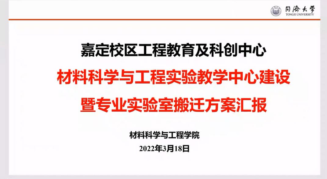蒋正武副院长就嘉定校区工程教育及科创中心和材料科学与工程实验教学中心建设暨专业实验室搬迁方案进行了汇报,从实验教学中心定位、实验教学中心架构、中心建设总体规划、建设方案与实施和中心建设工程预算五个方面进行介绍,希望各位老师积极参与,并以此为契机,实现腾笼换鸟,凤凰涅槃,从而助力学院“人才引领,两轮驱动”的新时期发展战略。