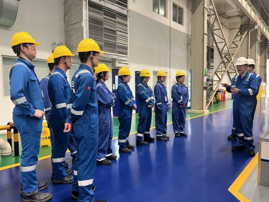 在技术中心及产品中心等厂区参观时,师生们严格遵循公司安全规定,依次完成安全检查流程,认真换上防护服、护目镜等专业装备。在工作人员的细致讲解下,大家深度了解斯伦贝谢完整的产业链布局、高度自动化的生产流程以及丰硕的技术创新成果,对公司的产品设计与发展现状形成更为清晰而全面的认识。