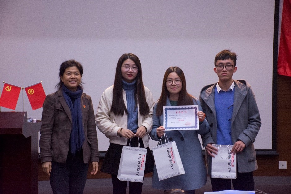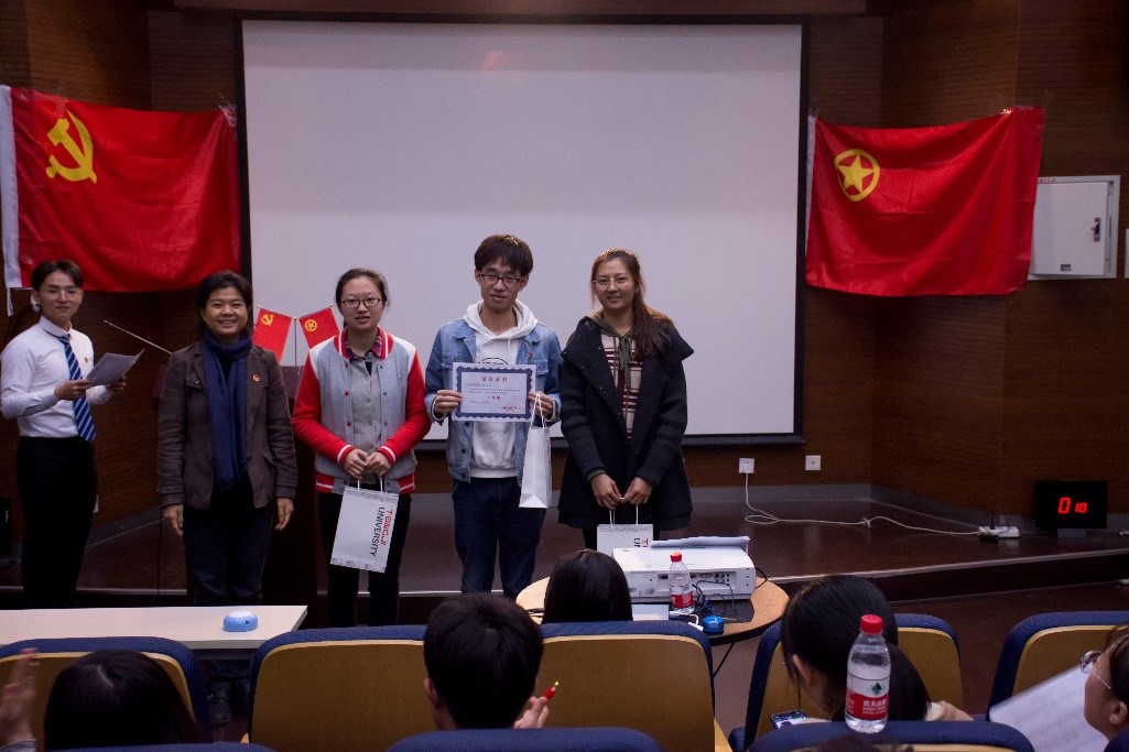 临近尾声,党委副书记王凌凌老师代表发言,她首先肯定了此次知识竞赛的重要意义和学生组织举办方的工作成果,并提出“竞赛已经落幕,学习却仍是进行时,赛后同学们可以通过建群资源分享或增加党支部团支部之间的联合交流学习,进一步学习党的最新理论知识”;另外,王老师以改革开放四十年来自己所感受到的切身体会,鼓励新一代学生党员不断夯实专业基础,将来为祖国的建设富强做出作为“同济人、材料人”应有的贡献。