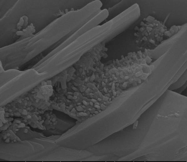 作品介绍:历史上有许多文明在岁月漫长的更迭里悄然遗失,比如人们曾在山谷中发现文字石碑的巴比伦文明、深埋在海底的亚特兰蒂斯文明等等。当你查看这幅电镜图时,你会疑心你看见的是正是某段曾经辉煌的文明遗留下来的文物,当水泥化为碑石,酸盐化作沙土,偶尔被风吹走表层的沙石才会露出在它怀里珍藏许久的秘密宝物。我们要珍惜并正视如今的文化,努力接纳它,发现它,作为现代社会的青年,更要发自肺腑地学会热爱我们传承千年历久弥新的中华文明。