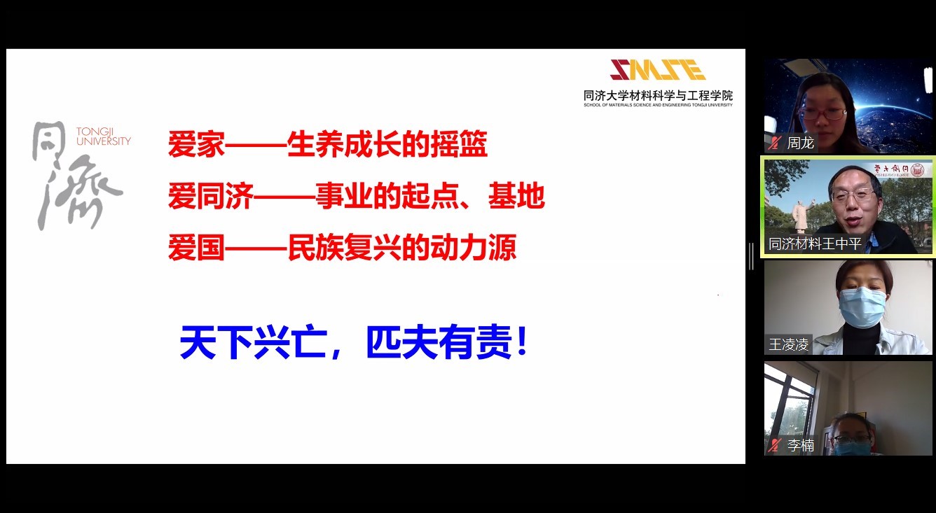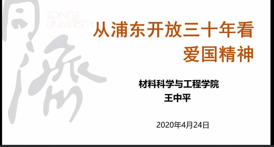 爱国主义是中华民族几千年文明传承至今的民族魂,爱国主义将中华民族紧密团结在一起,激励着一代又一代中华儿女为了民族富强、人民幸福攻克一个个“娄山关”、迈过一道道“腊子口”。为弘扬爱国主义精神,贯穿爱国主义教育,落实新时代爱国主义教育实施纲要,2020年4月24日,材料科学与工程学院于zoom线上平台举办“从浦东开放三十年的发展看爱国精神”爱国主义教育主题报告,特别邀请到学院党委书记王中平教授作为主讲嘉宾进行了演讲,本场报告由学院党委副书记王凌凌老师主持,400余位本研材料学子共同聆听学习。