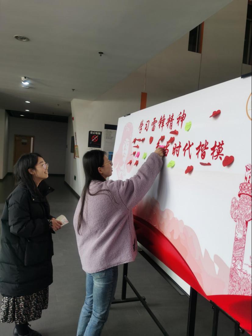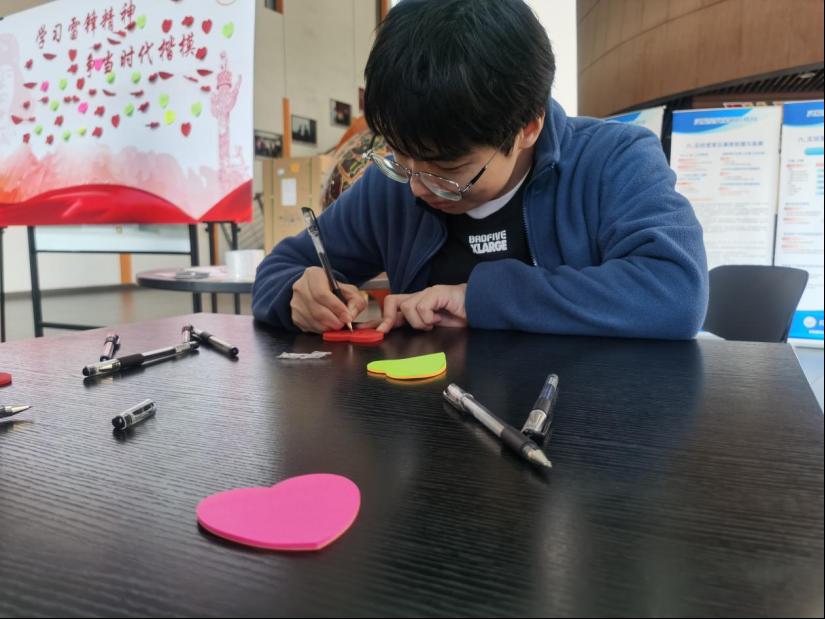 学院师生在五彩缤纷的便签纸上记录身边的“活雷锋”,书写对于雷锋精神的深刻感悟,并郑重地张贴在展板进行展示,描绘了一幅幅温馨感人的互助情景,以此传递爱心善意,分享点滴感动。