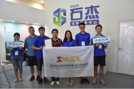 On the afternoon of August 7th, 2019, the Chengdu team of the Summer Practice Group of the School of Materials Science and Engineering of Tongji University went to Shijie Environmental Protection Technology Co., Ltd. and visited Ling Yujie, an outstanding graduate of the School of Materials.