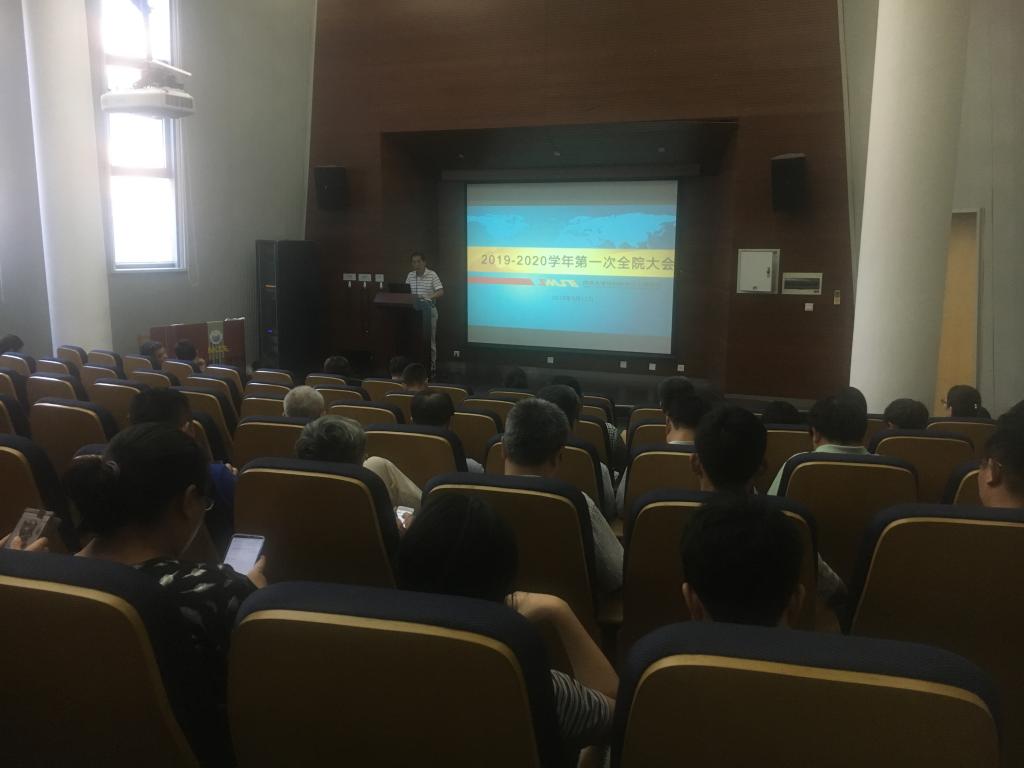 9月17日下午,我院2019-2020学年第一学期第一次全院大会在德才馆报告厅召开,全院教职工100余人参加会议,会议传达了学校“不忘初心、牢记使命”主题活动精神,并就本学期学院各项工作重点及计划作了布置,学院党委书...