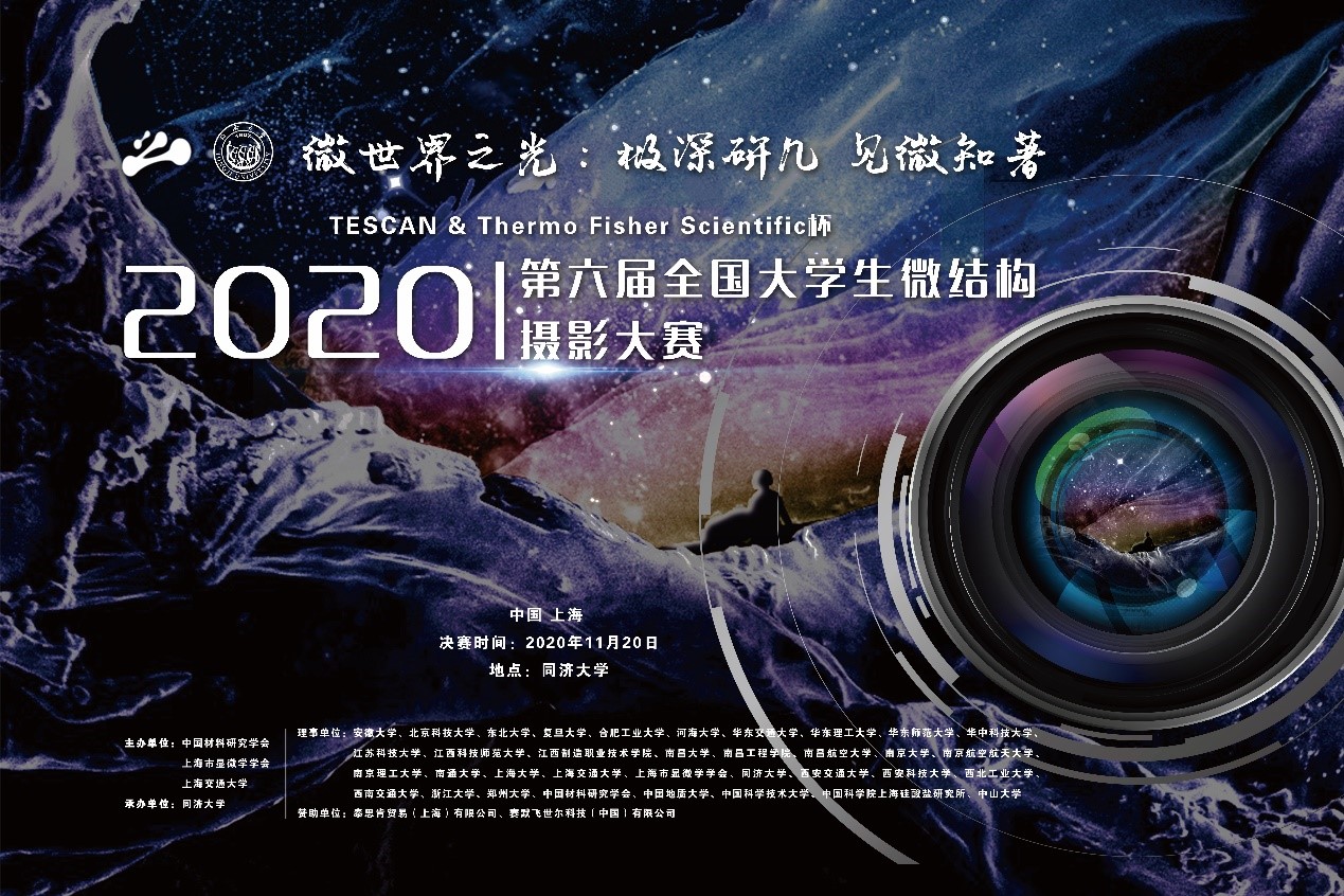 2020年11月20日上午,由中国材料研究学会、上海市显微学学会、上海交通大学共同主办,同济大学承办的2020年“极深研几·见微知著”第六届全国大学生微结构摄影大赛决赛暨学术论坛开幕式在同济大学嘉定校区济人楼312报告厅拉开帷幕。同济大学副校长雷星晖出席,全国大学生微结构摄影大赛理事会会长、上海市显微学学会副理事长、中国科学院上海硅酸盐研究所研究员曾毅、上海大学可持续能源研究院院长张久俊、上海市显微学学会副理...