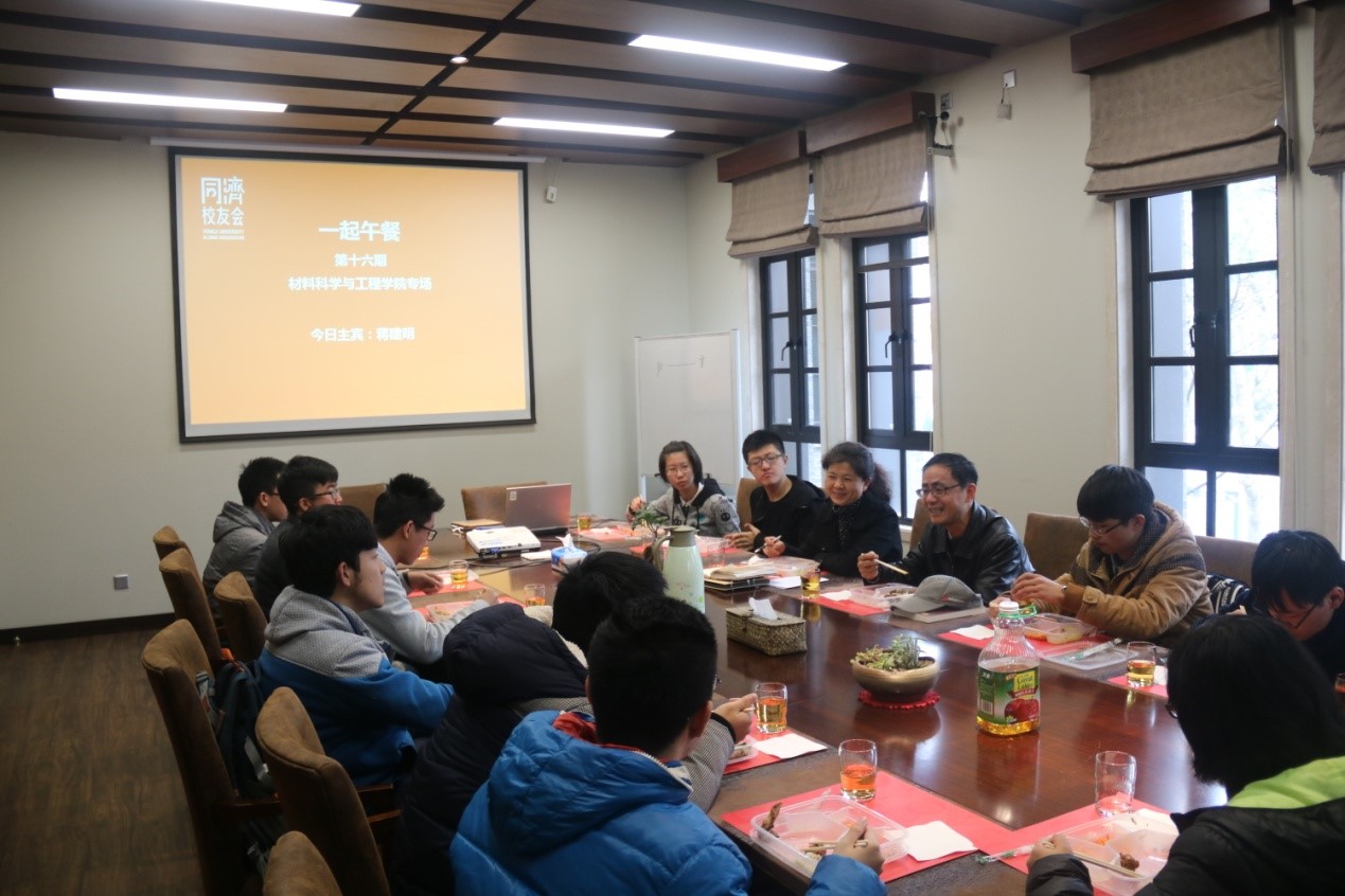 12月20日中午,同济大学1987届材料学院材性专业毕业生蒋建明校友返校,在学校校友之家与学院在校学子们共进午餐,互动交流,分享经历,品味人生。
